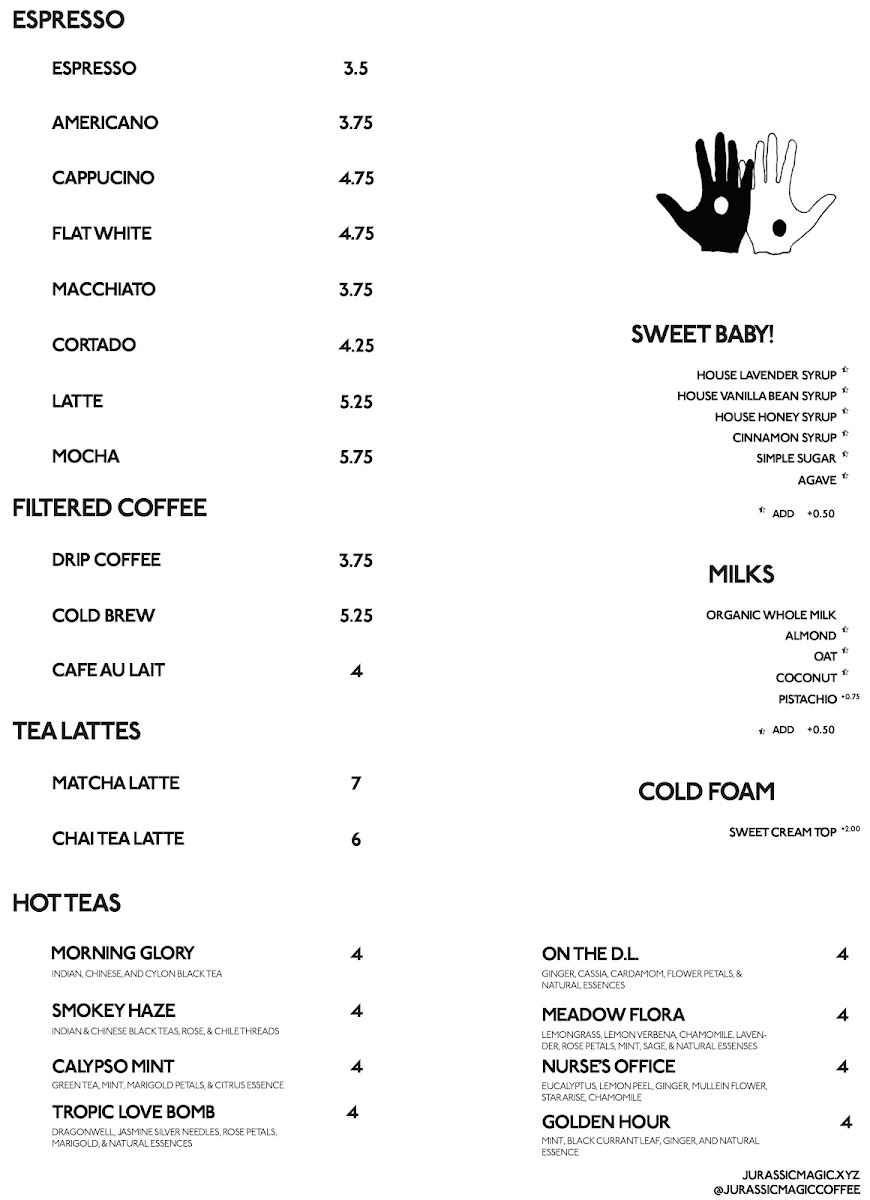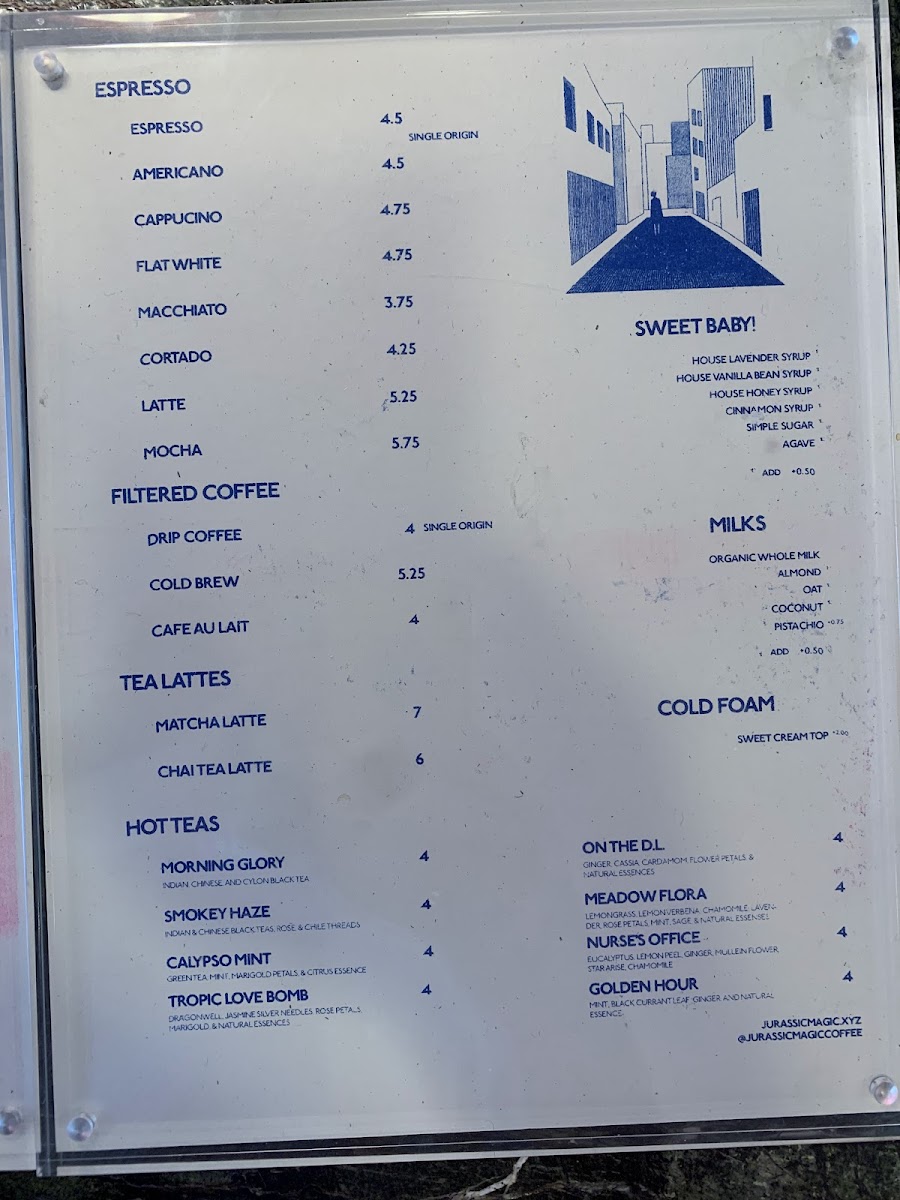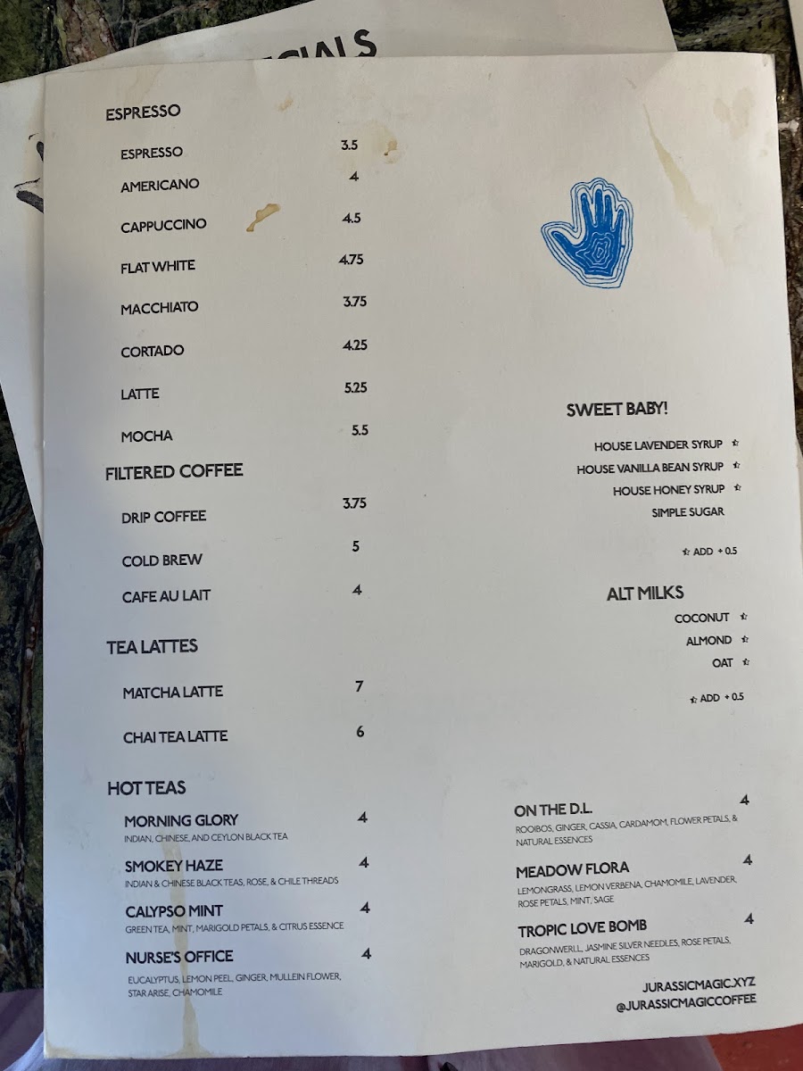 Welcome to Jurassic Magic, a unique gem located at 1865 S Mansfield Ave, Los Angeles. This charming venue offers a menu that tantalizes the senses, featuring specially crafted tea lattes and cold brew specials. Each drink is an artwork, designed to evoke not just flavor, but delight.